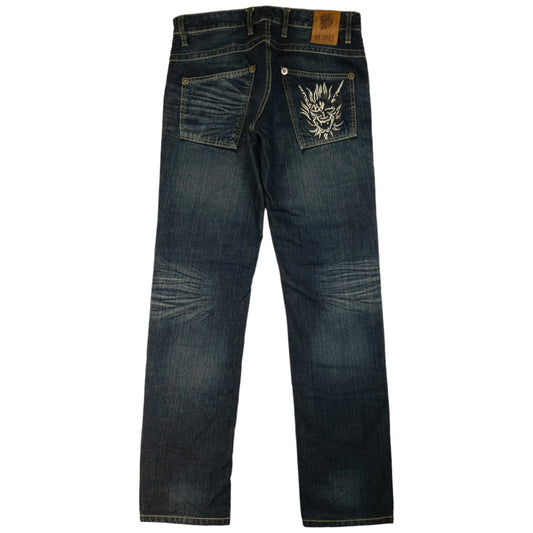 Vintage Oniarai Devil Embroidered Japanese Denim Jeans Size W32