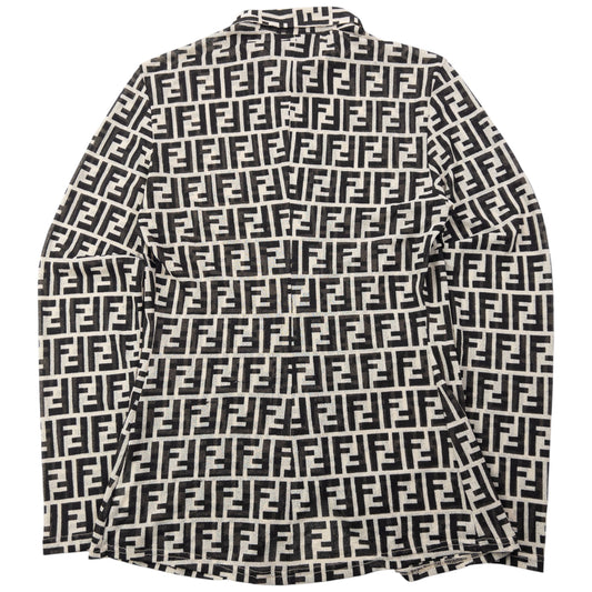 Vintage 90s Fendi Monogram Mesh Sheer Long Sleeve Button Up Shirt Womens Size M