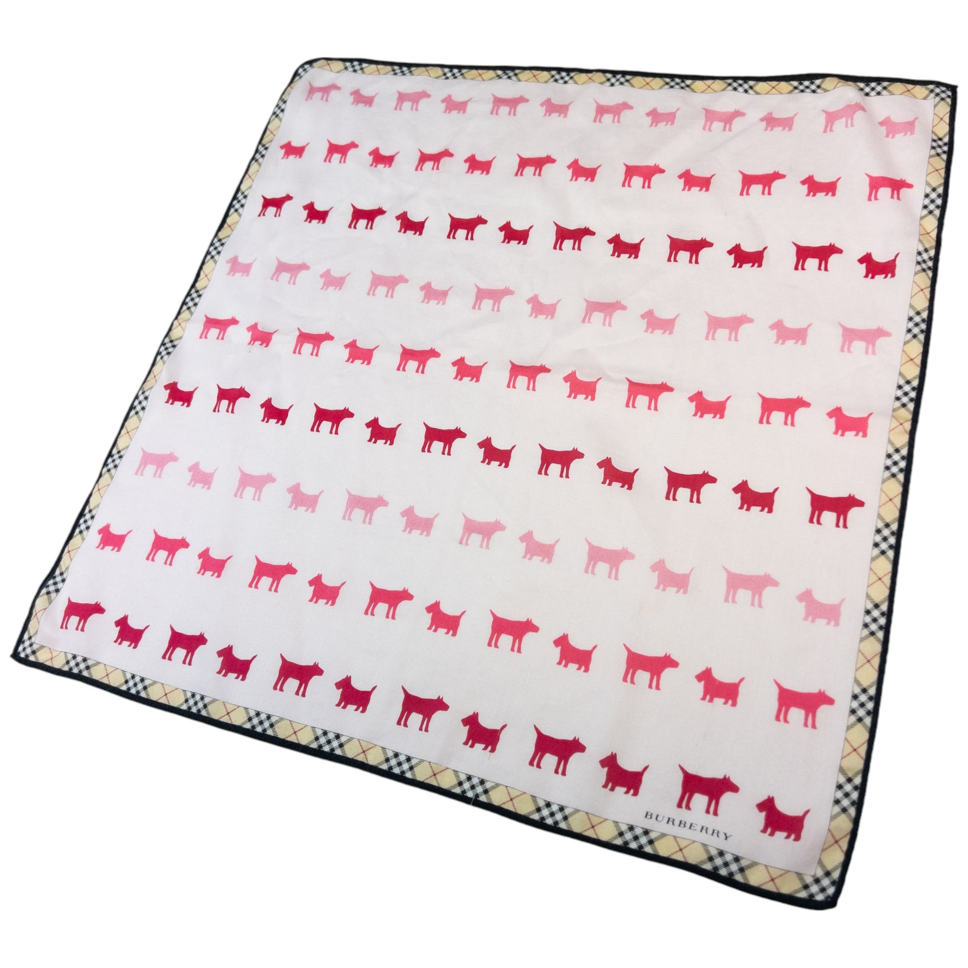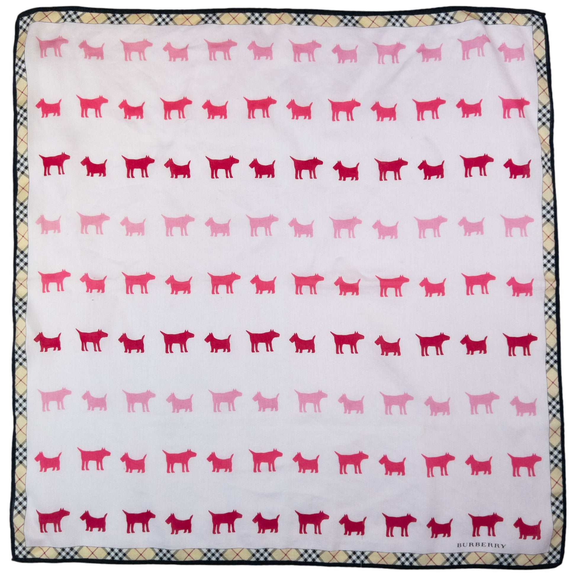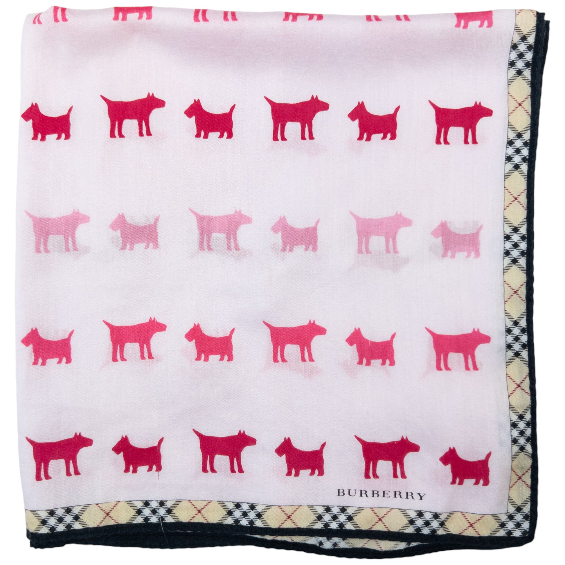 Other info: Pink colour, nova check pattern border, scottish terrier and bull terrier monogram pattern, 19x19 inch square measurement, no tag labels as seen