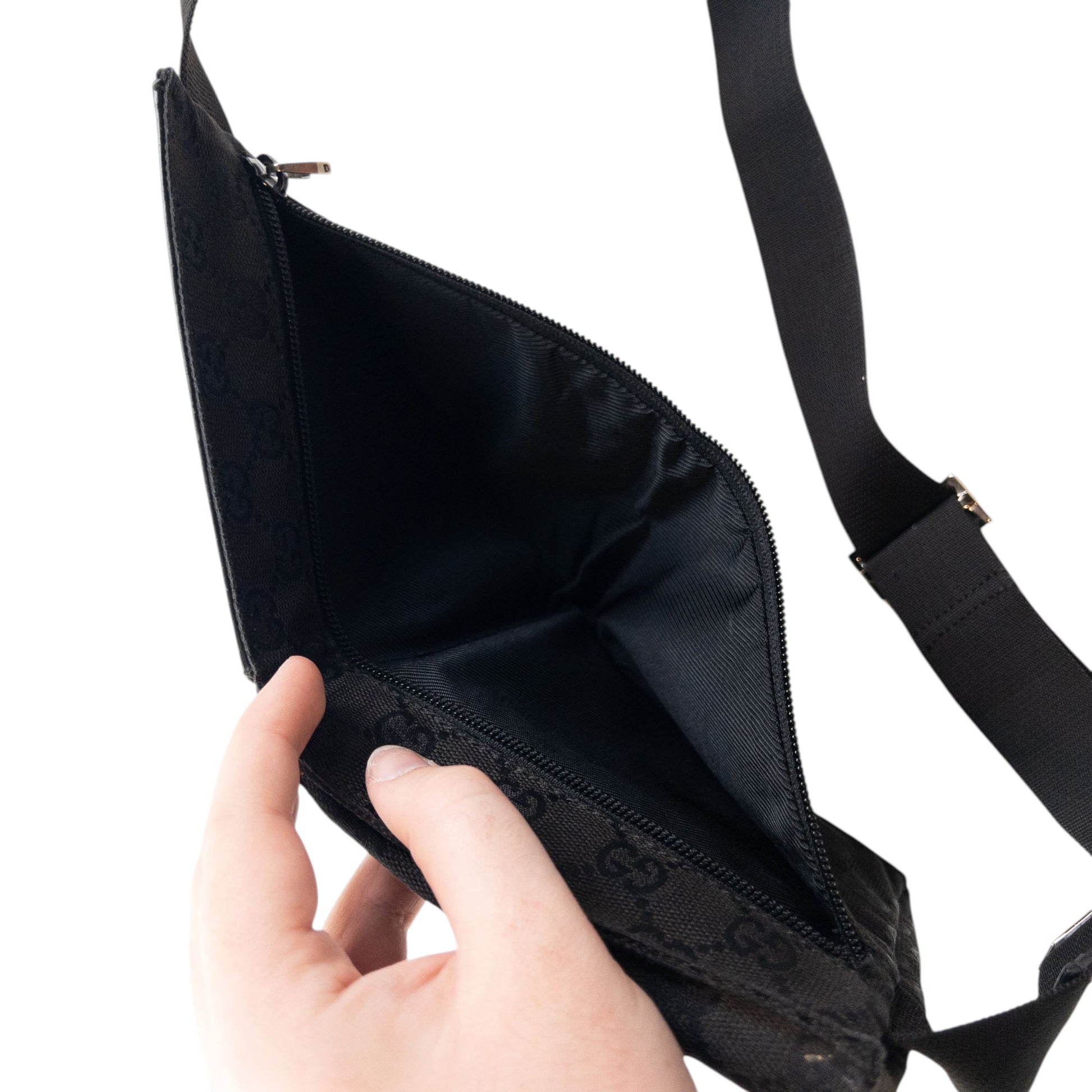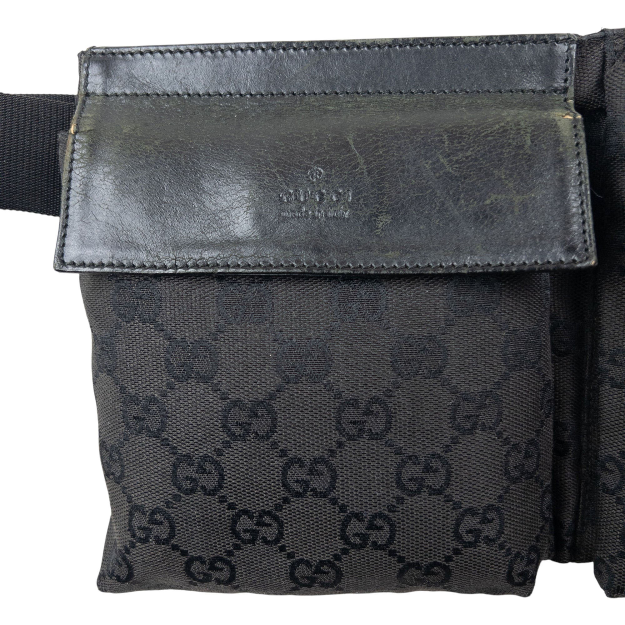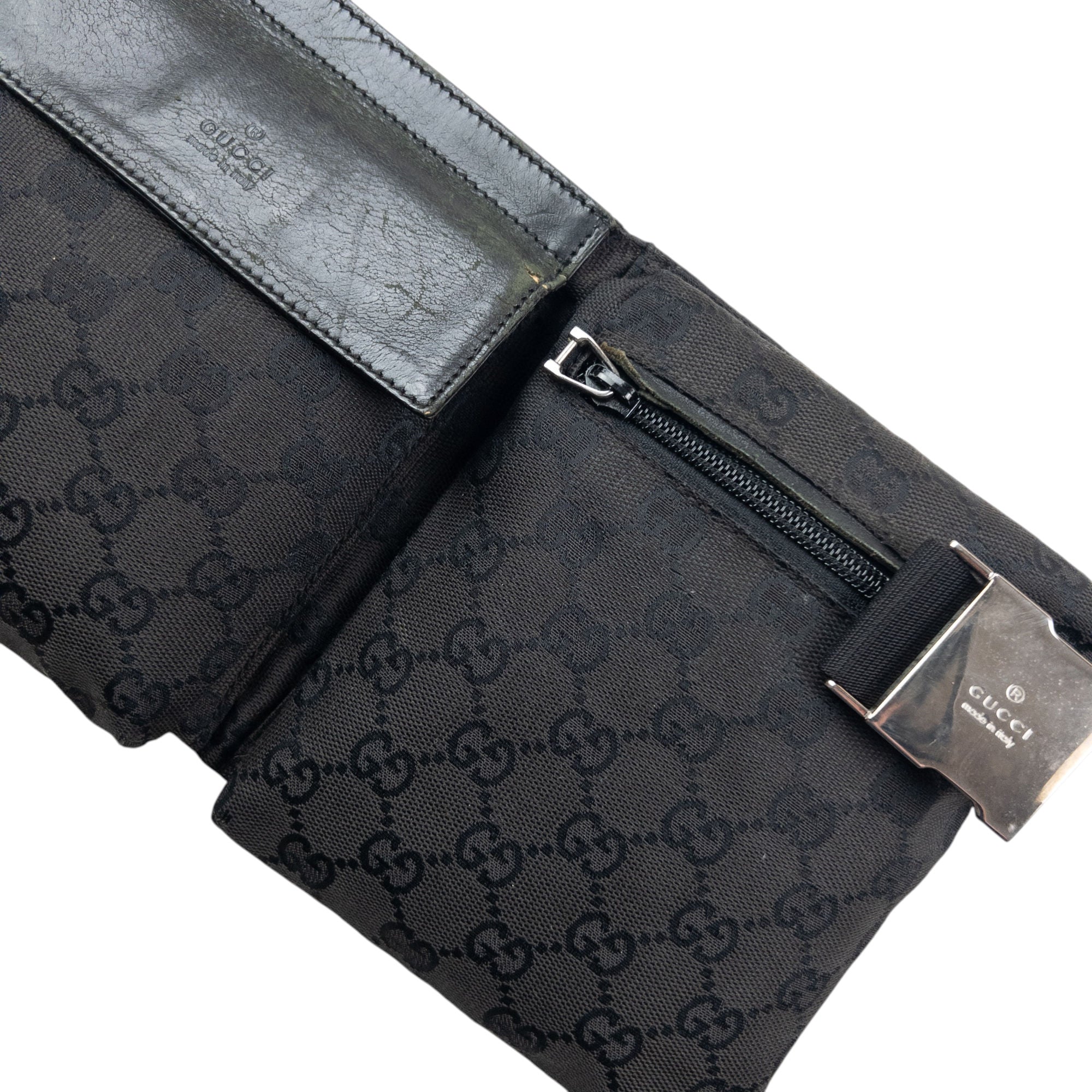 Other info: Black colour, monogram logo pattern, embossed details, adjustable buckle strap, minor general wear as seen