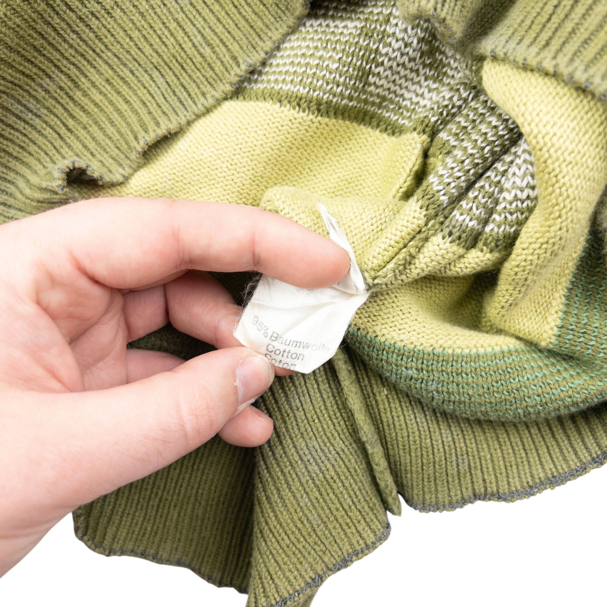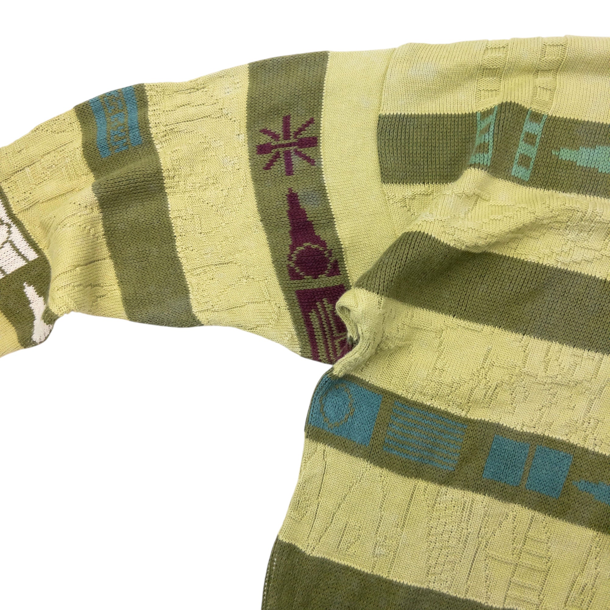 Other info: Green colour, multi colour stripe and symbol pattern, marks and general wear as seen