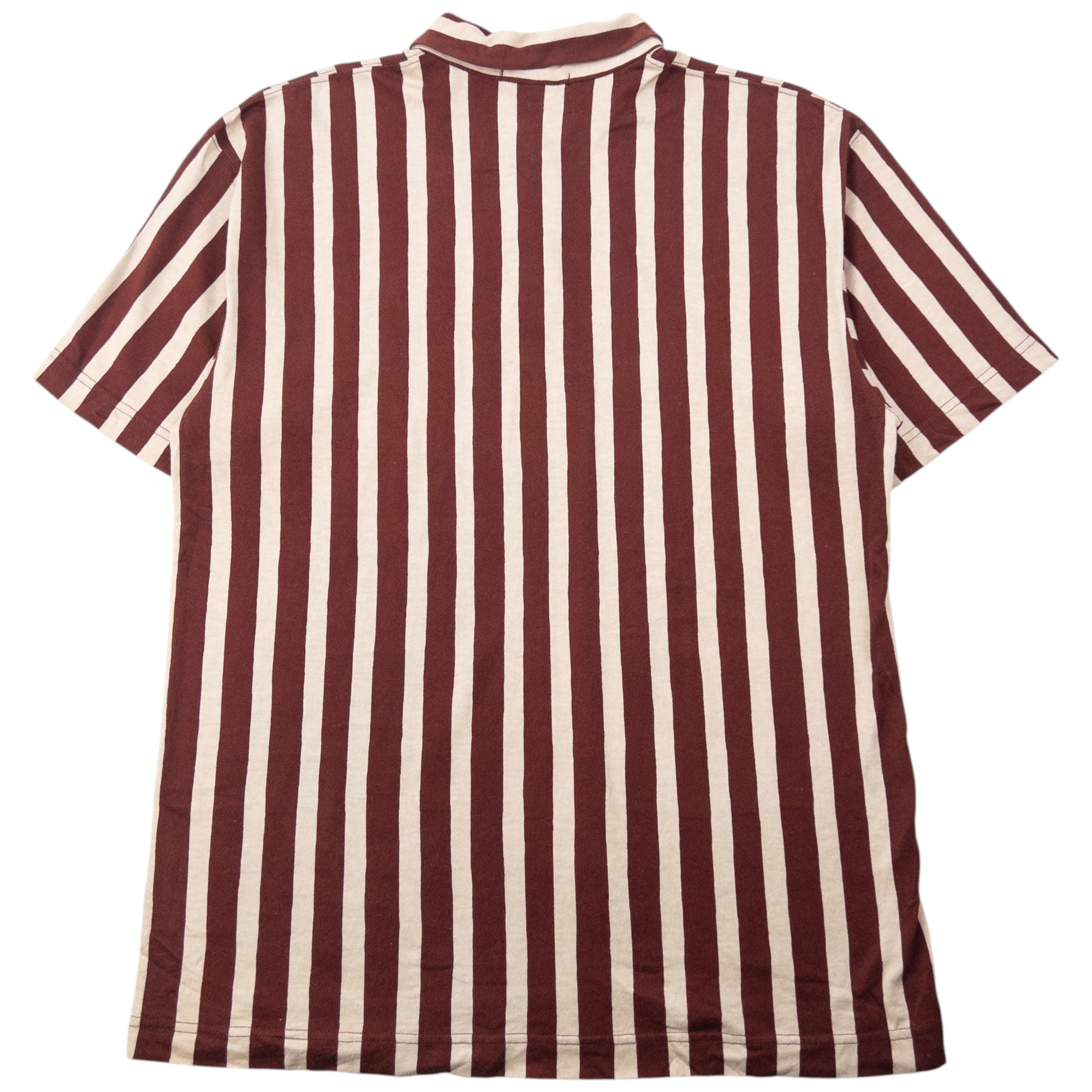 Other info: Brown colour, cream contrast colour, stripe pattern, polo collar
