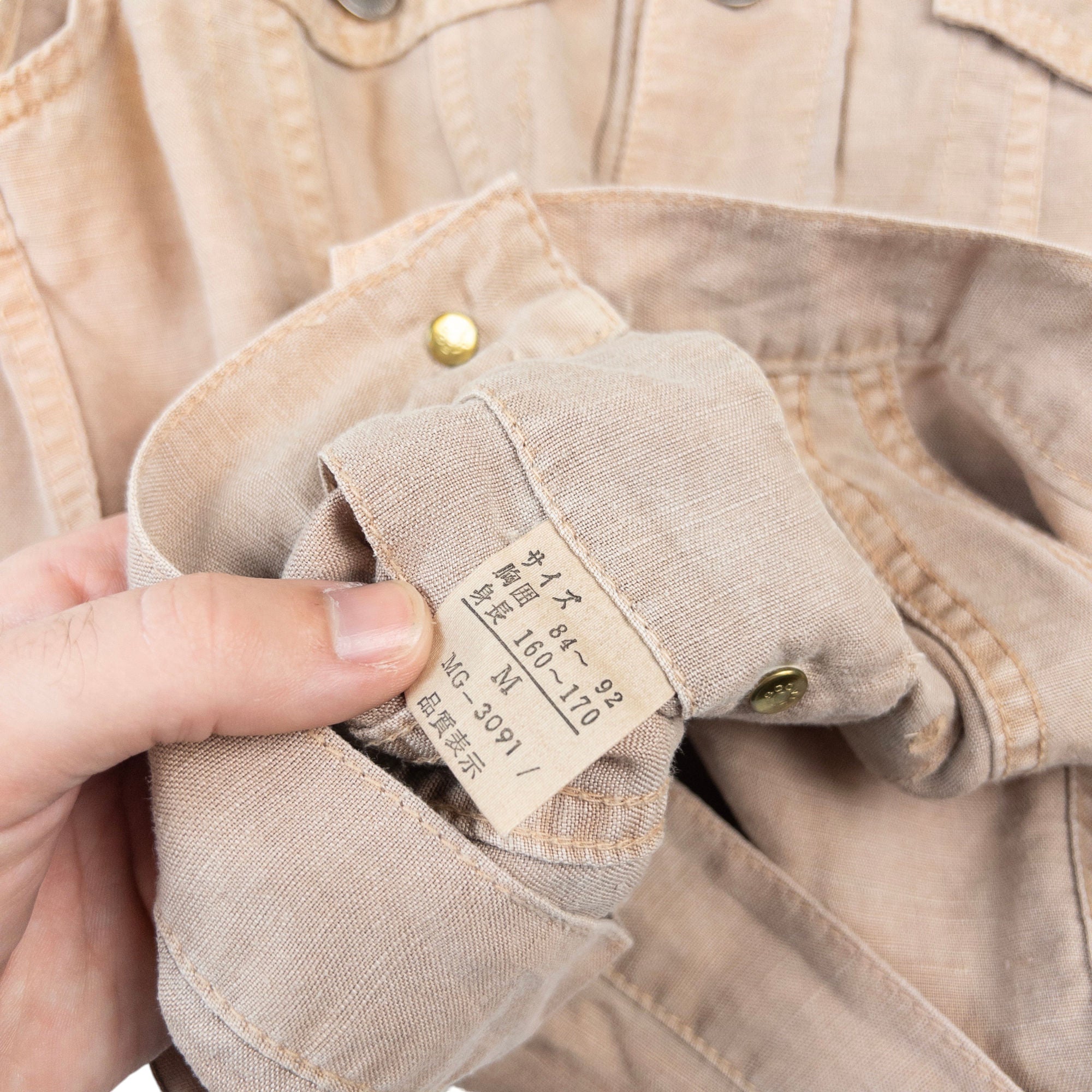 - Other info: Beige colour, lightweight feel, embossed fastenings, adjustable button waist/hem, visible signs of wear and discolouration as shown