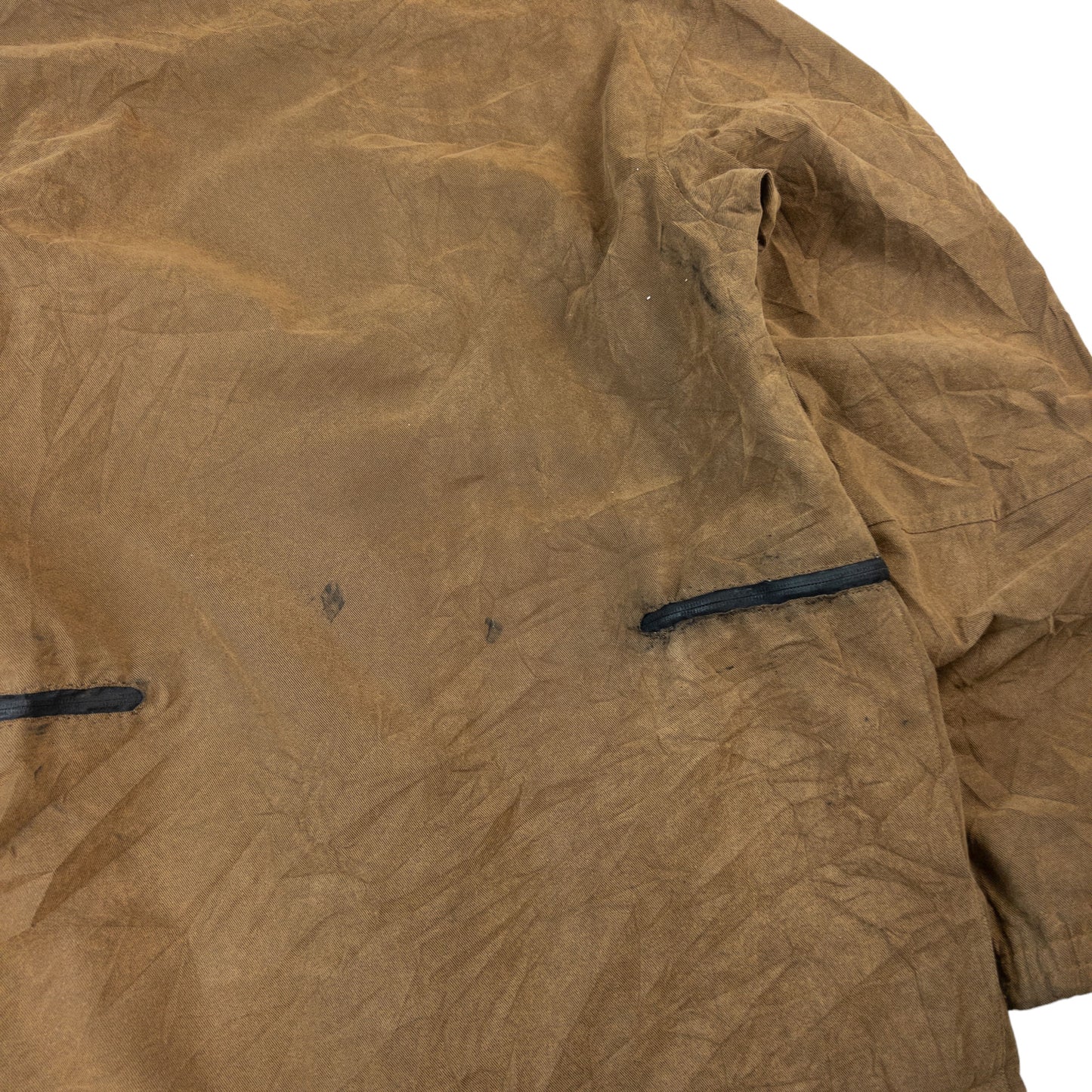 - Other info: Brown colour, heavyweight feel, adjustable elastic and velcro, snow-skirt feature, arm ventilation zips, visible marks and glue residue as shown