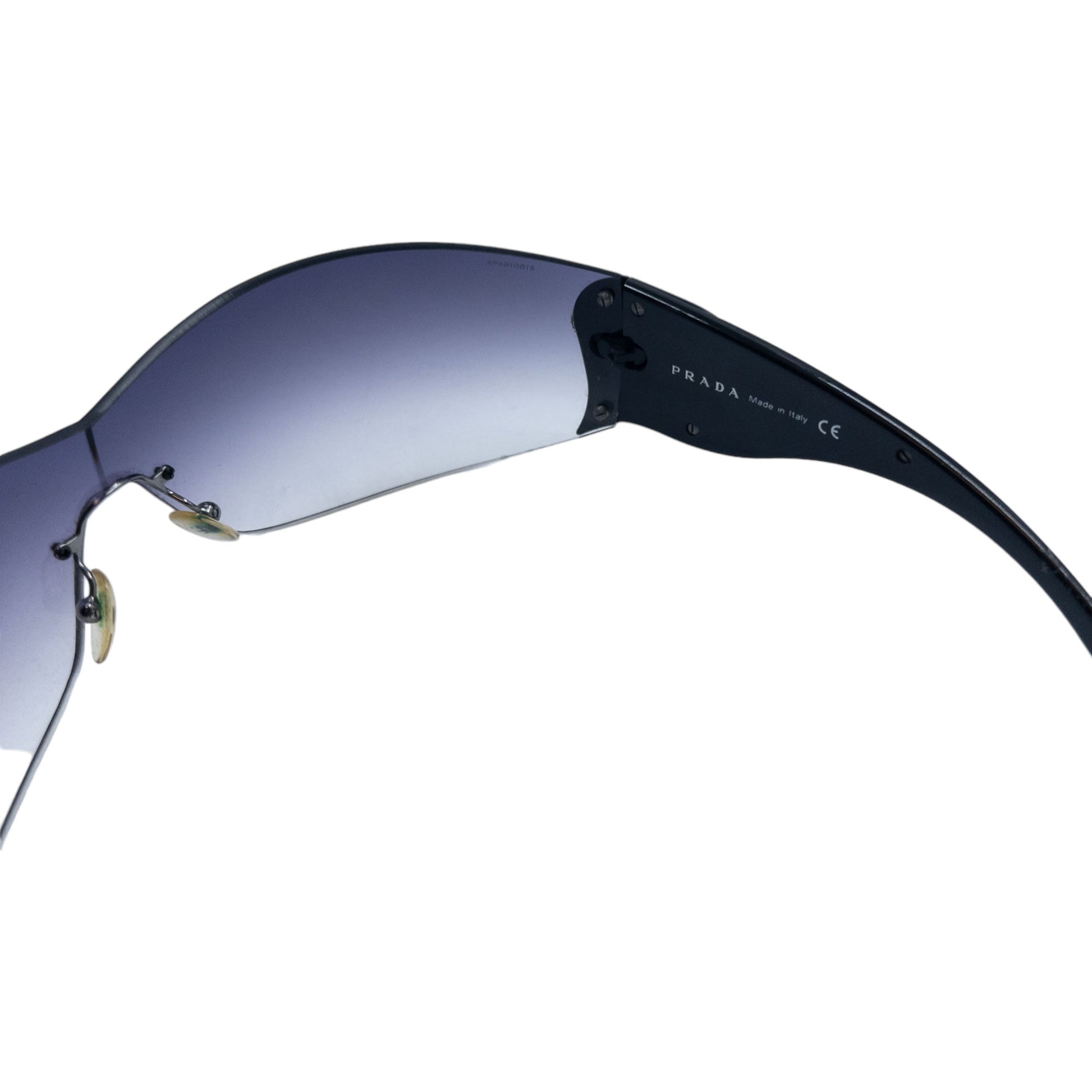 Other info: Black colour frame, monochrome swirl design, indigo blue gradient lens colour, some discolouration and wear to nose pieces as shown